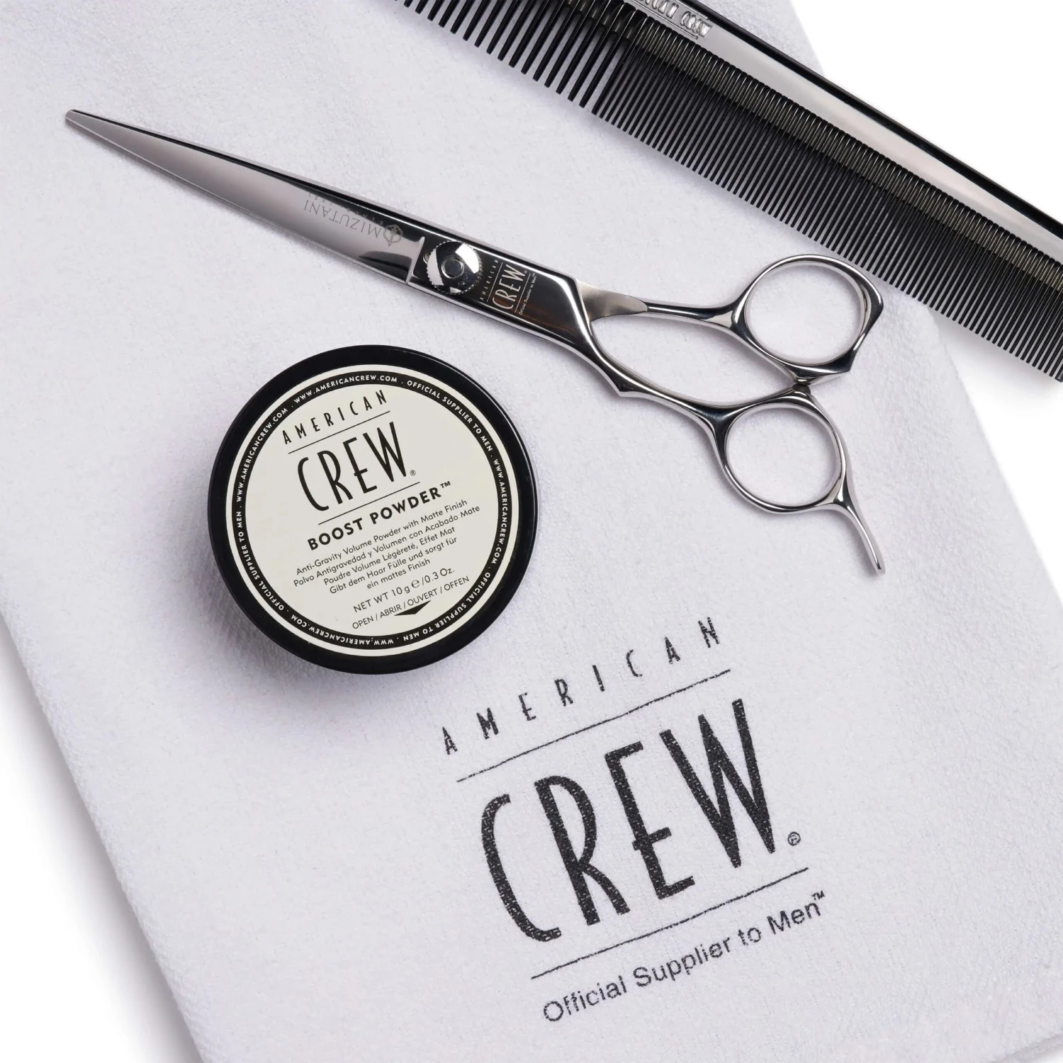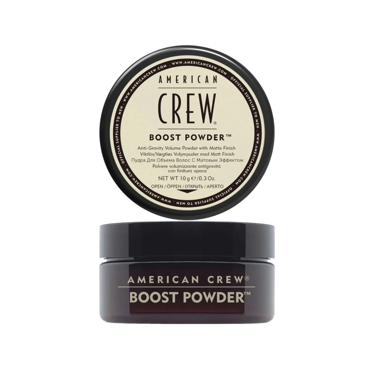 Anti-gravity volume powder with matte finish Give hair lift, thickness and a matte finish with American Crew Boost Powder. This weightless powder adds grit for dramatic, gravity-defying texture. And, it can be layered with virtually any other American Crew styling product.