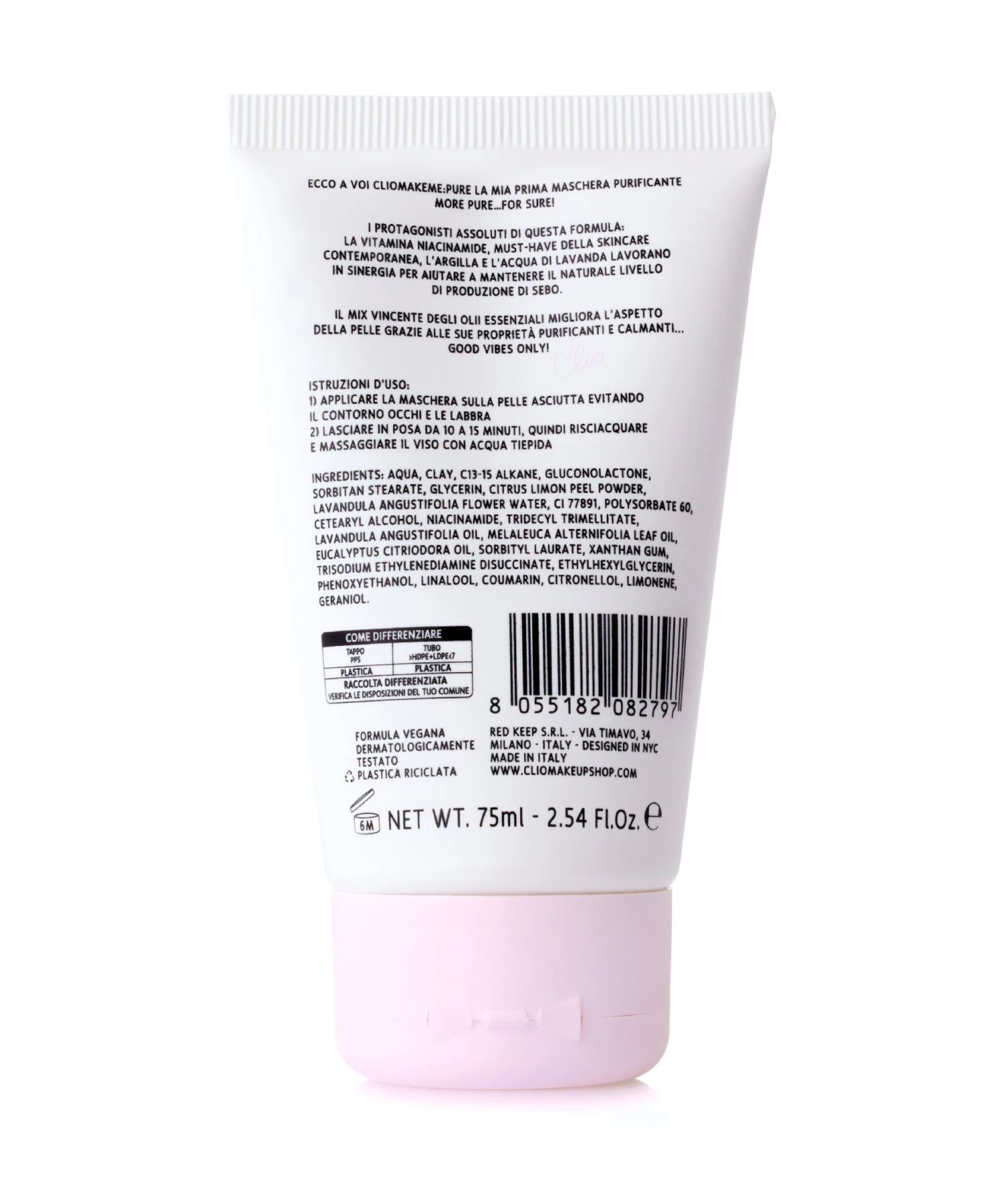 Ideata e formulata da Clio insieme al suo Team, CLIOMAKEME:PURE è prodotta interamente in Italia.