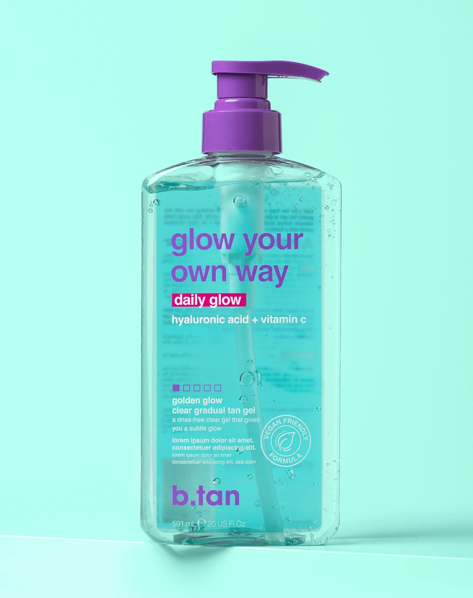a clear, daily gradual self tan gel to keep your skin super hydrated as you build your tan. infused with hyaluronic acid + pro-vitamin b5 to help brighten + moisturize skin. use every day to get your glow going or use in between tans to maintain your tan results. the lightweight, rinse-free, and transfer-free formula keeps your tanning routine easy AF.