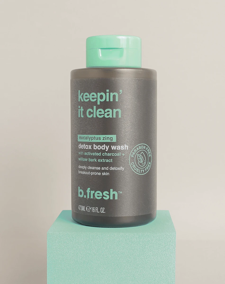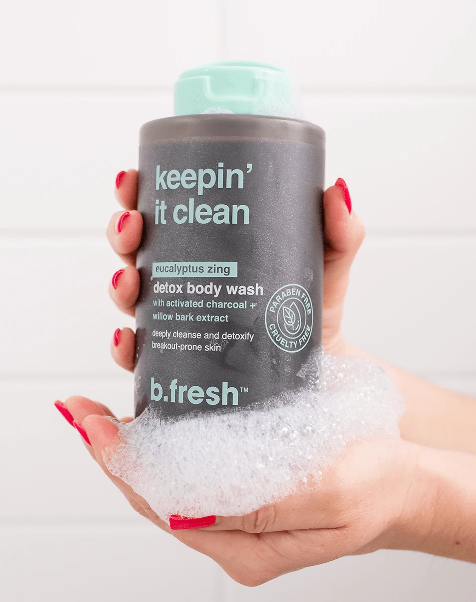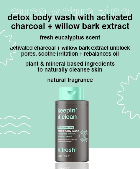 i’m a deep cleansing body wash made with a powerful blend of detoxifying activated charcoal and willow bark extract for clearing pores and soothing irritated skin.