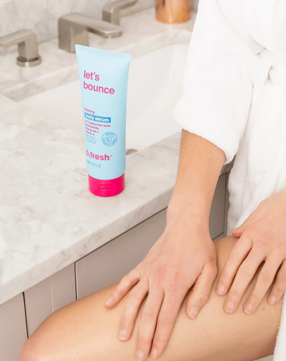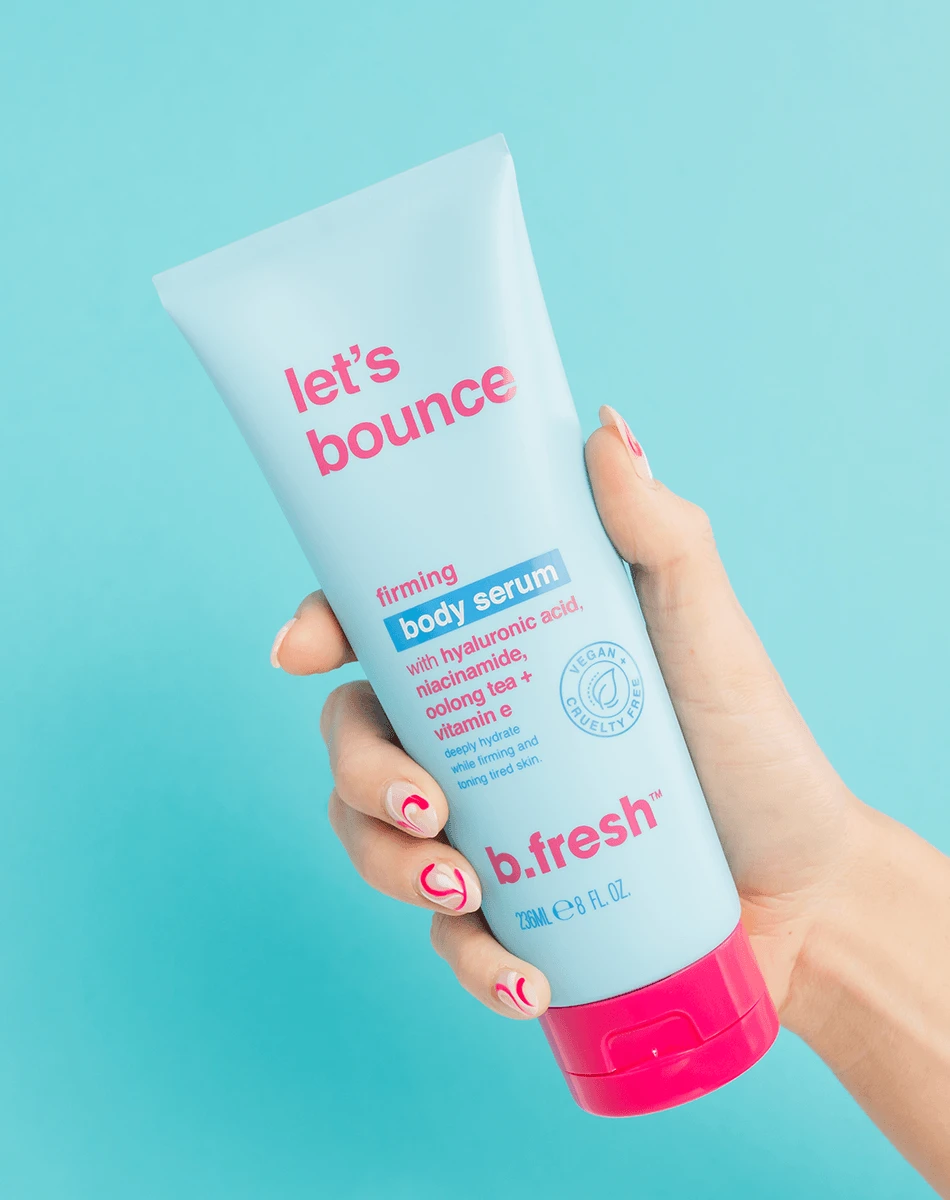 i’m a firming body serum designed to give deflated skin a lil’ bounce back with hyaluronic acid, niacinamide, oolong tea + vitamin e that work to hydrate, plump up & firm for bouncy skin.