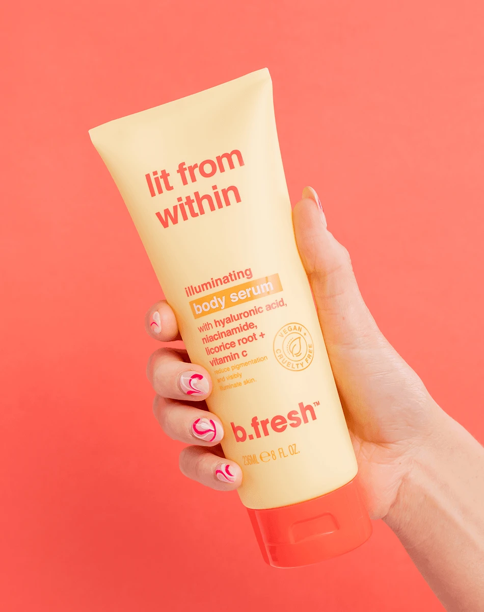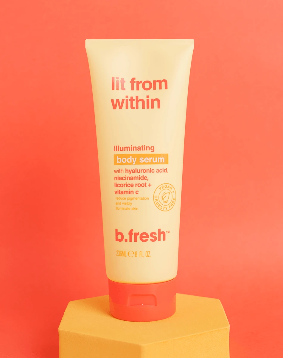 i’m an illuminating body serum to light your skin from within. i reduce pigmentation & dark spots while brightening & illuminating skin thanks skincare faves to hyaluronic acid, niacinamide, licorice root + vitamin c.